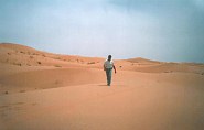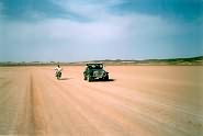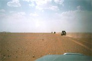 Komas und die vor uns liegenden Reifenspuren im Sand !
